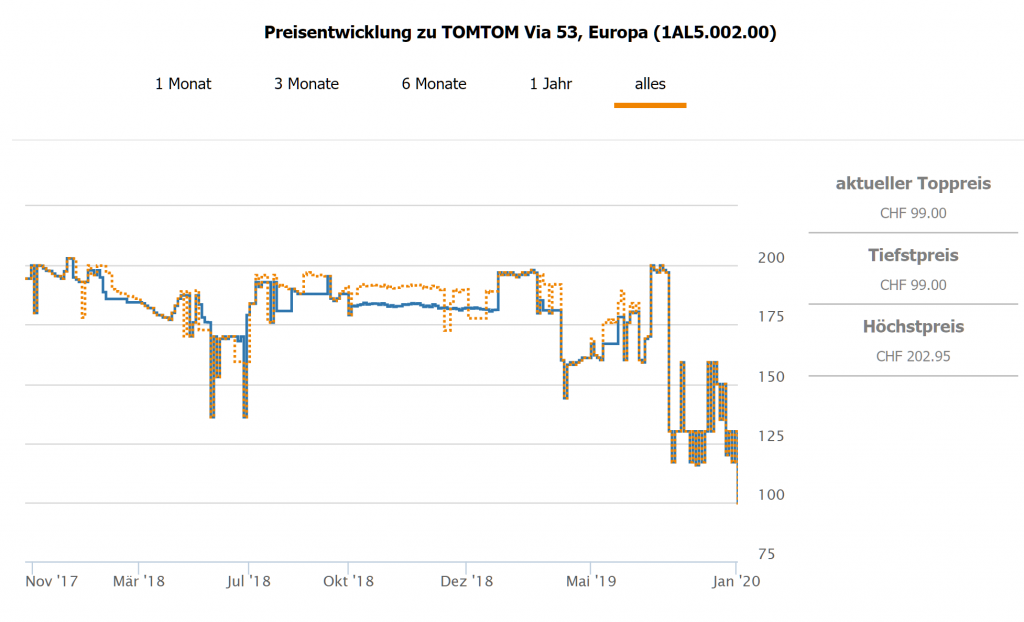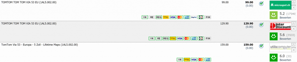 Bei microspot gibt’s gerade das TOM TOM VIA 53 EU für 99 Franken. Zweitbester Preis ist bei CHF 129.90 Bisher nicht günstiger als CHF 115.60