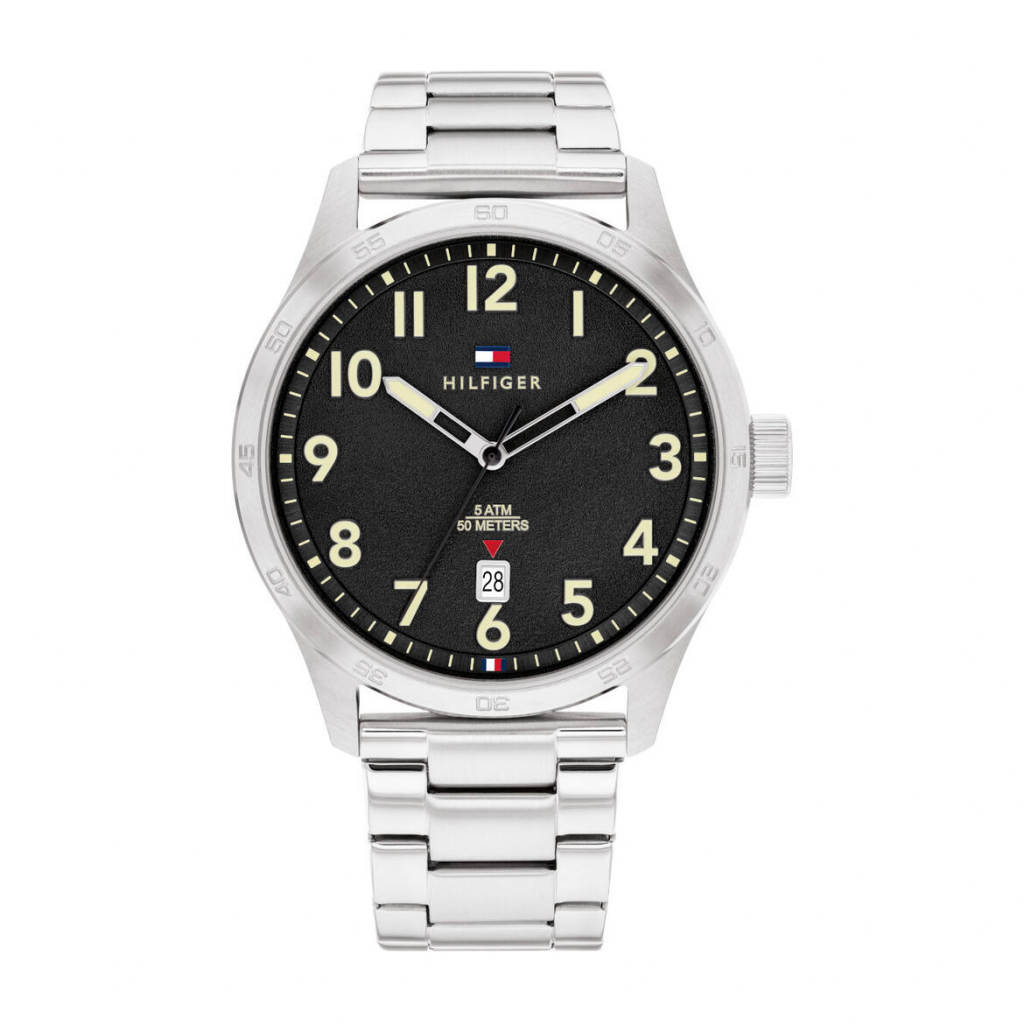 Die Tommy Hilfiger «Forrest» Herrenuhr präsentiert sich als ein markanter Zeitmesser mit präzisem Quarzuhrwerk und einem eleganten, silberfarbenen Edelstahlarmband. Ihr Gehäuse hat einen Durchmesser von 43 mm und ist äusserst robust. Das Mineralglas schützt das elegante schwarze Zifferblatt, das mit einer analogen Anzeige ausgestattet ist. Für ein sicheres und angenehmes Trageerlebnis sorgt der Dorn-Verschluss. Diese Armbanduhr ist nicht nur ein stilvolles Accessoire, sondern auch ein Zeichen des guten Geschmacks für den modernen Mann von heute. Sie eignet sich perfekt für den täglichen Gebrauch oder besondere Anlässe. Erweitern Sie Ihre Uhrenkollektion um ein zeitloses Modell.