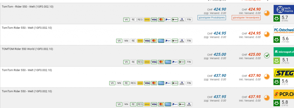 Bei Galaxus gibt es das TomTom Rider 550 (Motorrad) Navigationsgerät für den neuen Bestpreis von CHF 325.-. Der vorherige Bestpreis war CHF 329.-. Der zweitbeste Preis beträgt CHF 424.90.