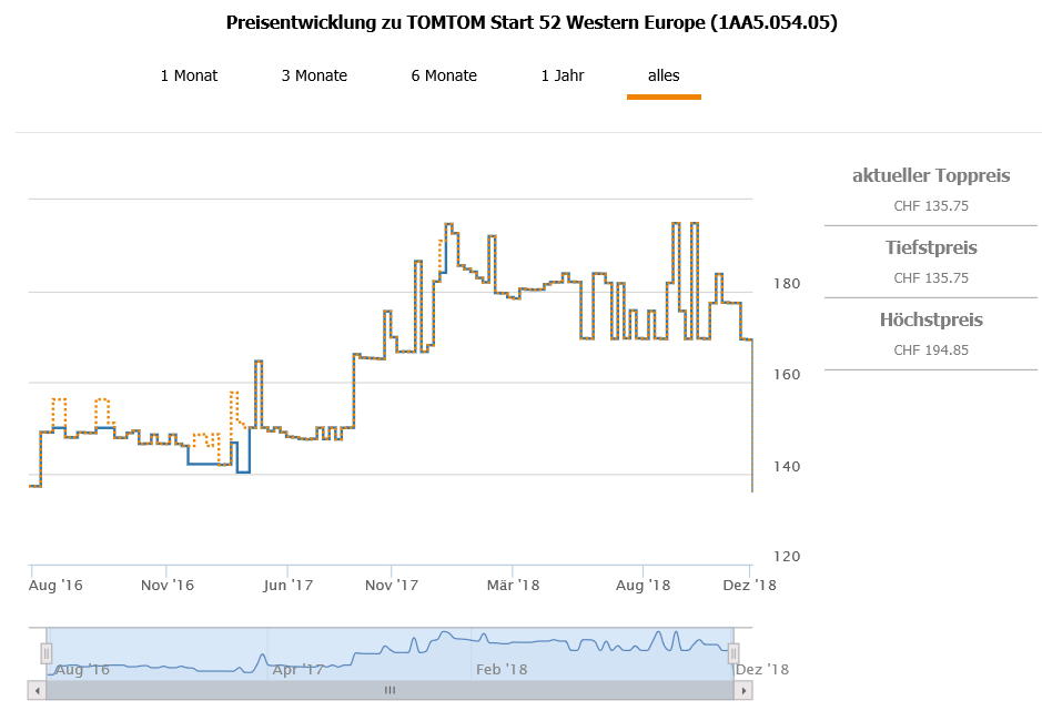 Gemäss toppreise war der bestprice bislang bei 137.15 CHF, der zweitbeste Preis aktuell ist 147.05 CHF (da auch interdiscount das Gerät in Aktion hat), drittbester Preis sind dann 169.30 CHF.