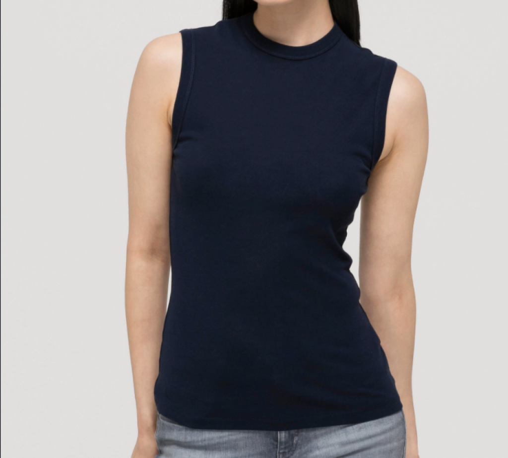 Dank nachhaltiger Bio-Baumwolle ist das Top sehr angenehm auf der Haut. Das ärmellose Top aus mattem Crêpe-Jersey ist figurbetont geschnitten und liegt mit den breiten Schultern voll im Trend.