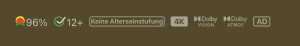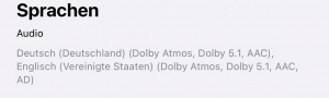 Übrigens ist mir gerade aufgefallen, dass es die deutsche Dolby Atmos Tonspur im iTunes Store nicht auflistet, nur Dolby 5.1. Wenn man aber über die Apple TV App den Film öffnet, stimmt alles. Dolby Atmos Tonspur auf Englisch UND Deutsch 😀