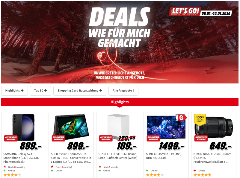 Weitere top Angebote werden laufend als Produktedeals aufgeschaltet und in der MediaMarkt-Übersicht gelistet.