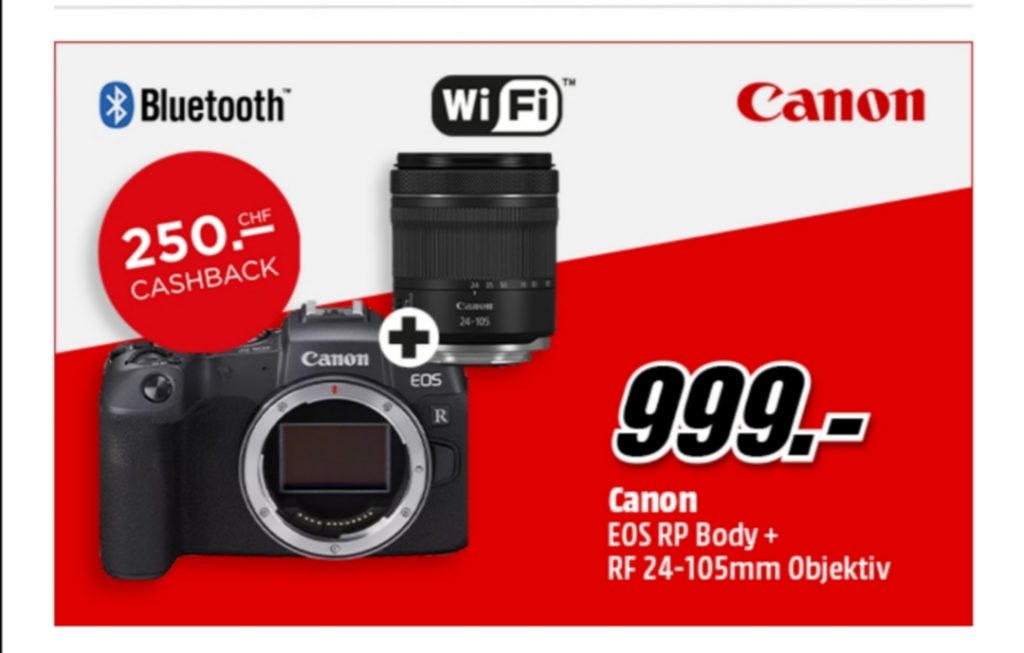 Angebot leider abgelaufen! Jeden Tag findet die Deal-Community neue Angebote. Sehen Sie sich jetzt die neuen Aktionen an... Zu den aktuellen Deals Freizeit & ReisenHome Entertainment & FotoMediaMarkt AbgelaufenTop Vollformatkamera - CANON EOS RP Body + RF 24-105mm f/4-7.1 IS STM inkl. Objektiv! Geschrieben von tinu vor 5 Jahren Freizeit & Reisen, Home Entertainment & Foto 7. November 2020 10 13 CHF 999.- CHF 1149.- Zum Deal Abgelaufen inkl. 250 Fr. Cashback Die besten Deals von heute anzeigen tinu 5,214 Vollständiges Profil anzeigen