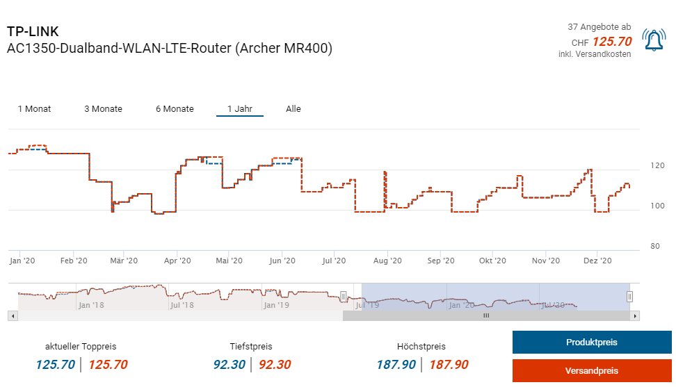 Bei Amazon Spanien gibts derzeit den Router Archer MR400 von TP-Link zum Aktionspreis von knapp 78 Franken inkl. Lieferung in die Schweiz. Laut toppreise starten die Preise bei ca. 125 Franken, digitec verlangt in Aktion geradezu freche 99 Franken. Laut toppreise solls zudem ein neuer Bestpreis sein.