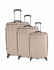 Dieses Kofferset ist wahrlich ein Goldstück! Die edle Farbe sorgt für Hingucker und gute Erkennbarkeit, damit du deine Koffer auf dem Gepäckband garantiert sofort wiedererkennst. Das Set eignet sich für kurze Wochenendtrips oder ausgedehnte Sommerferien. Der Koffer ist robust gebaut und verfügt über einen Kantenschutz. Dank Griffen und ausziehbarem Henkel lassen sich die Rollkoffer leicht anheben und ziehen. Das integrierte Zahlenschloss sorgt für die nötige Sicherheit vor Langfingern am Flughafen. Reise ab jetzt eleganter und sicherer mit diesem champagnerfarbenen Reisekoffer Hartschalenkoffer AVA im 3er Set!