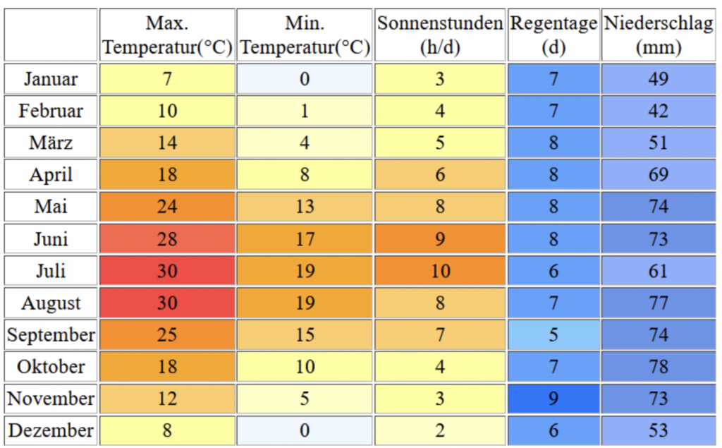 Hier noch eine Klimaübersicht von Ledro von Wassertemperatur.com: