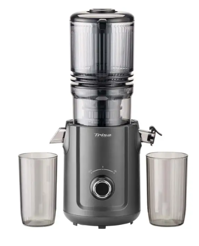 Der Trisa 7012.4345 Entsafter Schwarz überzeugt mit einem extra grossen Einfüllschacht, der das Einfüllen ganzer Früchte und Gemüse ermöglicht. Die Kaltpress-Technologie sorgt für frische, vitaminreiche Säfte, die deinen Start in den Tag gesund und lecker machen. Die einfache Reinigung und die 5 Jahre Garantie machen das Gerät besonders benutzerfreundlich und langlebig. So kannst du schnell und unkompliziert frische Säfte geniessen, ohne viel Aufwand. Ein praktischer Helfer für den Alltag, der dir Zeit spart und für mehr Wohlbefinden sorgt