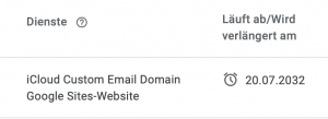 Falls ihr ein Apple iCloud Abonnement habt (z.B. zusätzlichen iCloud-Speicher) könnt ihr die Domäne komplementär dazu hinzufügen (möglich ab iOS 16 / macOS 13), welche dann über das Mailprogramme von Apple verwaltbar ist. Andernfalls könnt ihr im Kaufprozess auch Webhosting über Google kaufen (würde ich jedoch nicht empfehlen, da dies teurer als manch andere Anbieter ist.