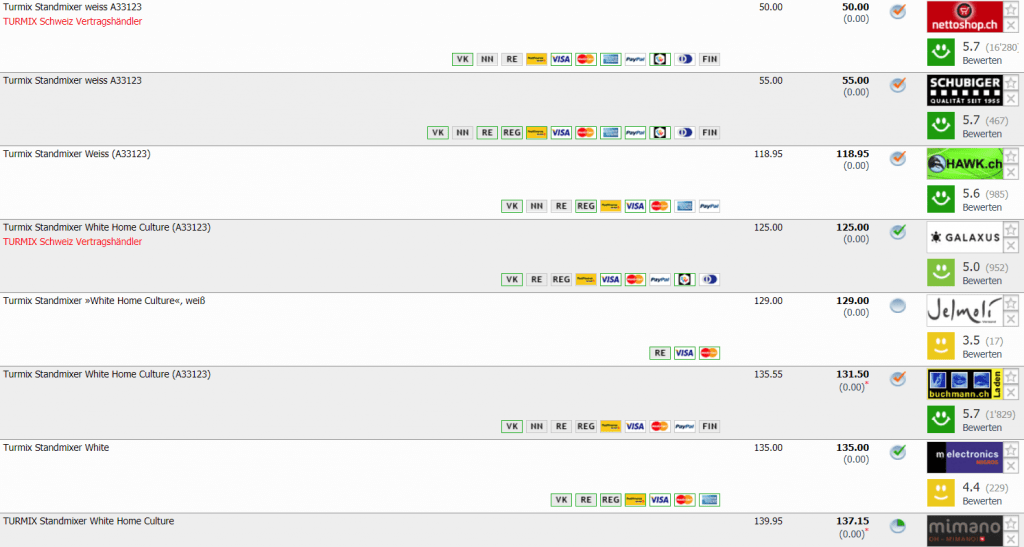 Auf der melectronics Website kostet das gleiche Modell 135 CHF. Siehe unten der Vergleich von weiteren Händlern.