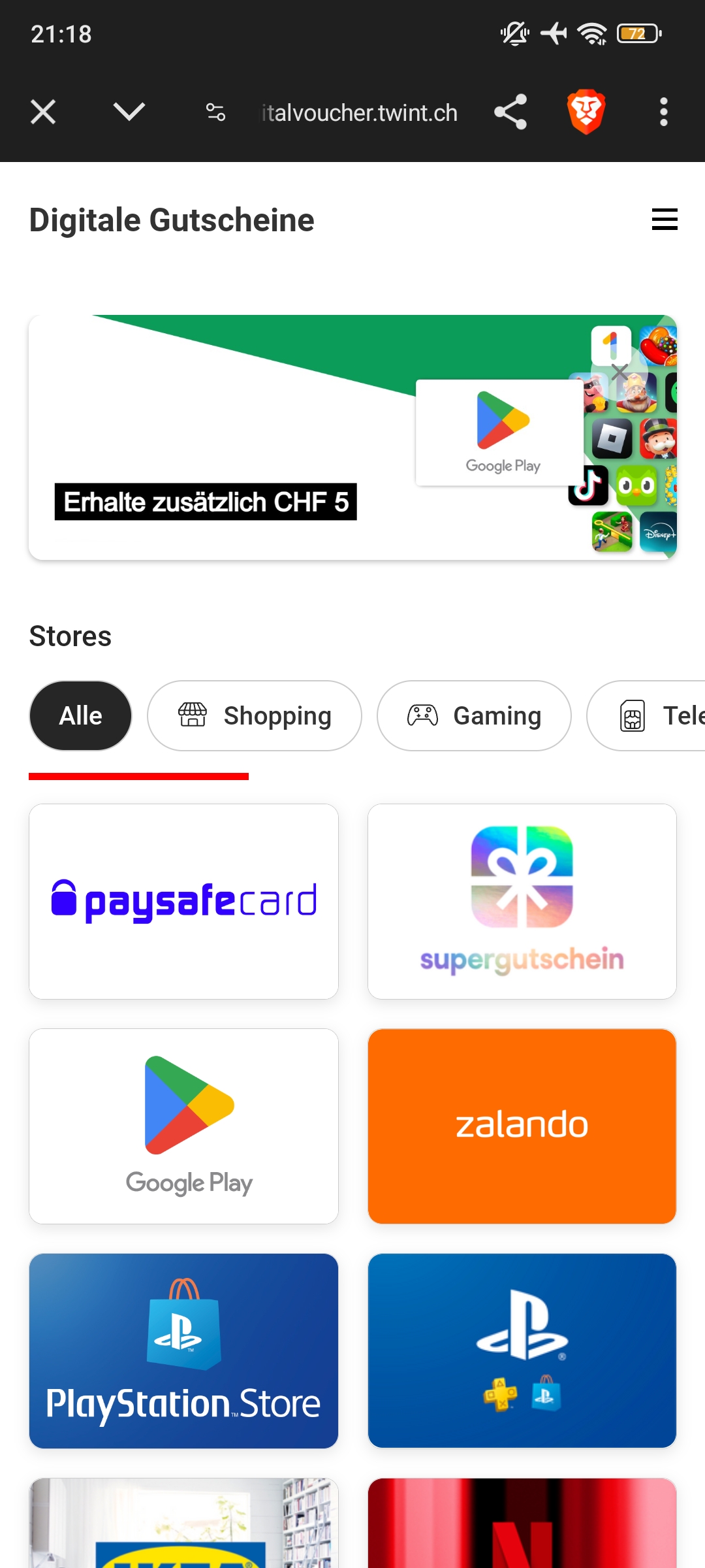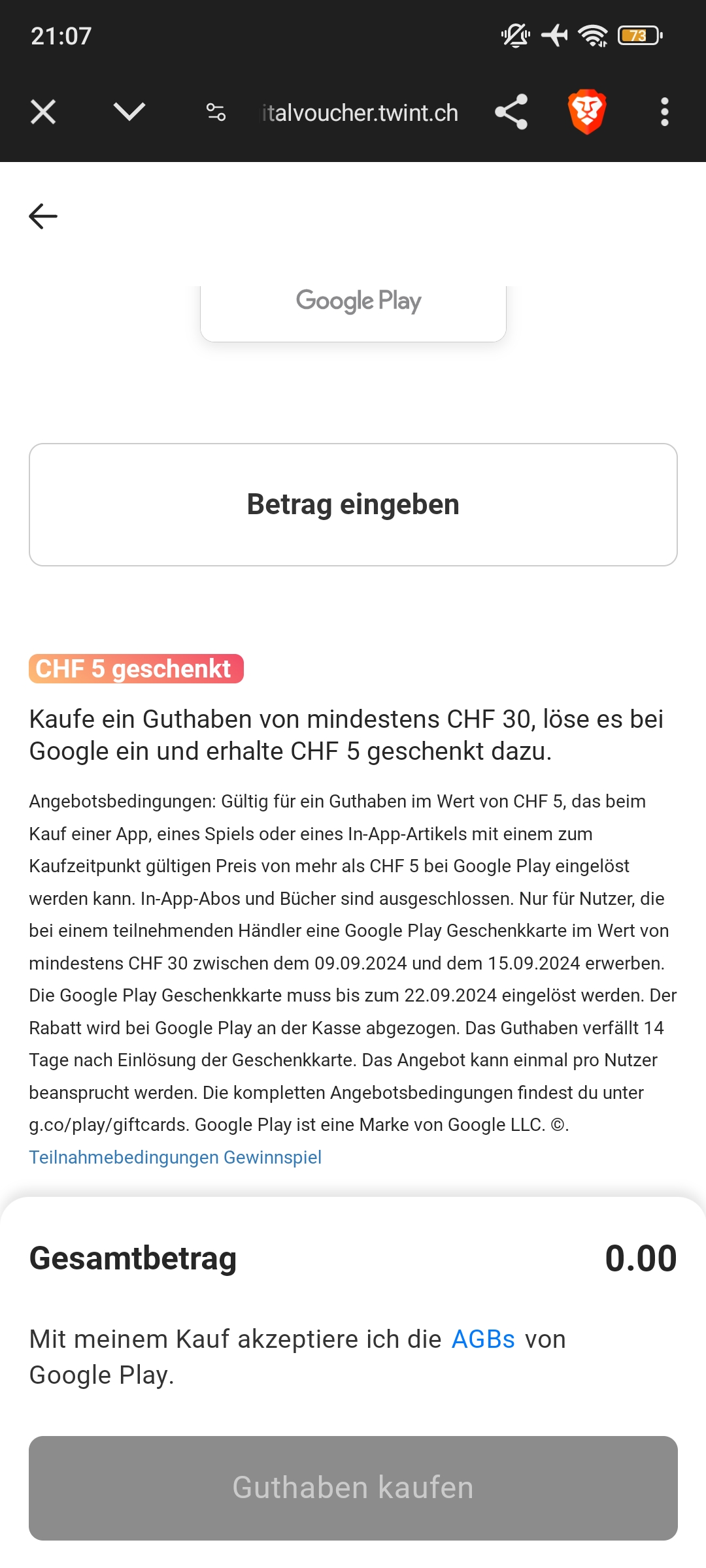 Habe es nun einfach ausprobiert. Ich habe nun 30Fr. als Google Play Guthaben und eine Meldung bekommen, dass ich 5Fr. auf einen Einkauf bis zum 25.09.2024 sparen kann.