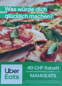 War doch bei eat.ch früher auch so. Aktuell aber nicht mehr nötig. Uber Eats will auch Marktanteile. Das kostet.