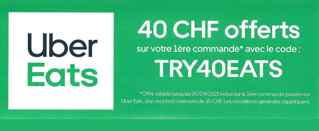 bis 30.04.2021 in der 1. Bestellung bei Uber Eats enthalten, für einen Mindestbetrag von CHF 35.