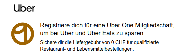 Evtl. könnt ihr euch auch noch kostenlos für Uber One registrieren und die Liefer- & Servicegebühren sparen. Hat bei mir geklappt. Zudem war Uber Eats hier früher nicht verfügbar. Checkt mal wieder.