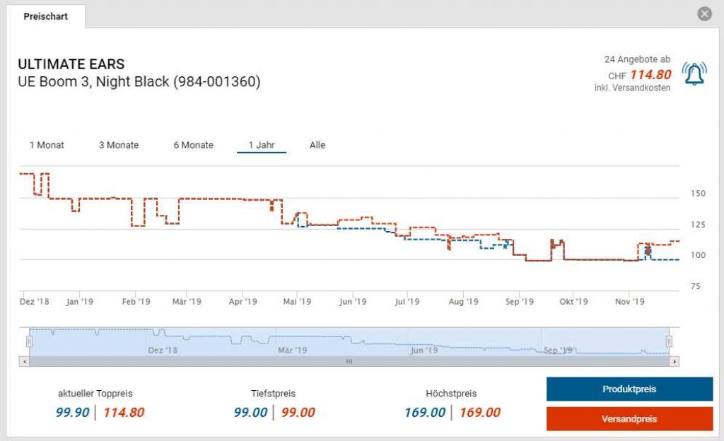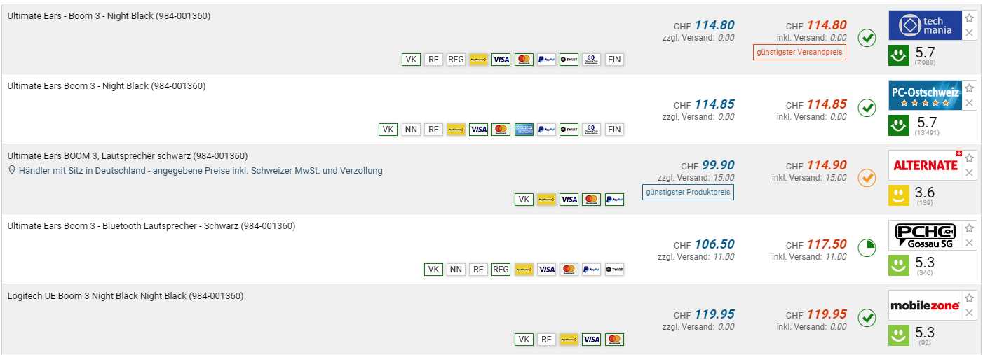 Bei 123mobile gibt es die UE Boom 3 für den neuen Bestpreis von CHF 79.-. Der vorherige Bestpreis war CHF 99.-. Der zweitbeste Preis beträgt CHF 114.80.