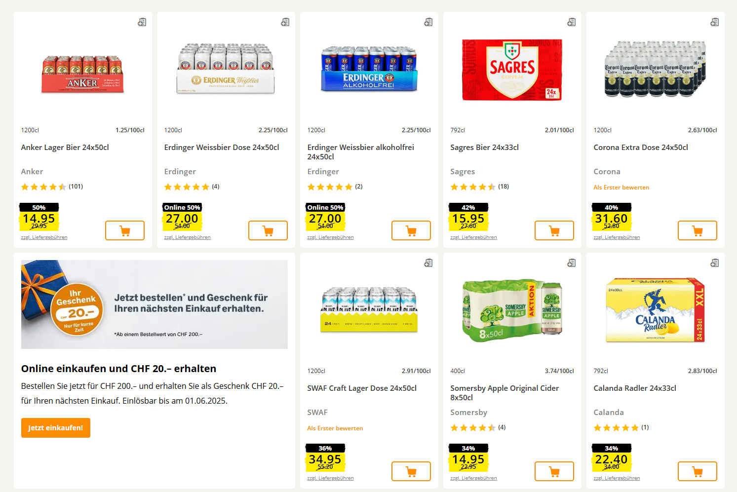 - Anker 24x50cl für CHF 14.95 (CHF 0.62 pro Dose)