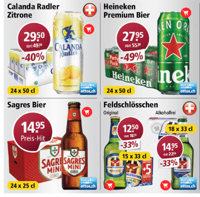- Heineken 24x50cl für CHF 27.95 (Bestpreis: CHF 1.15 pro Dose)