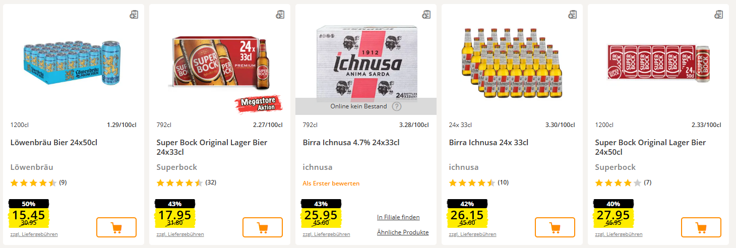 - Superbock 33cl für 75 Rappen pro Flasche & 50cl für 1.16 Franken pro Dose