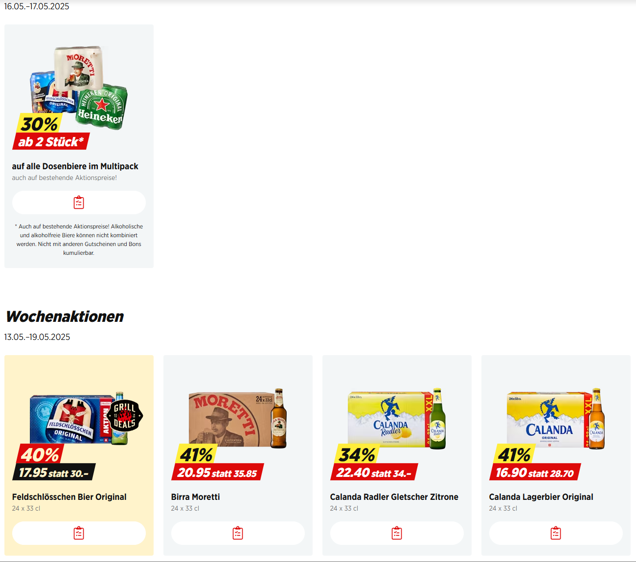 - Calanda Lagerbier 24x33cl für CHF 16.90 (neu in der Preiserfassung)