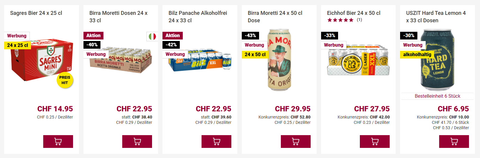 - Birra Moretti 24×50 cl für CHF 31.50 (kein Bestpreis, bei Otto’s günstiger)