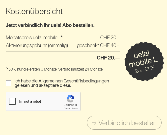 Uela mobile XS Zone 1 für CHF 7.50 statt 15.-