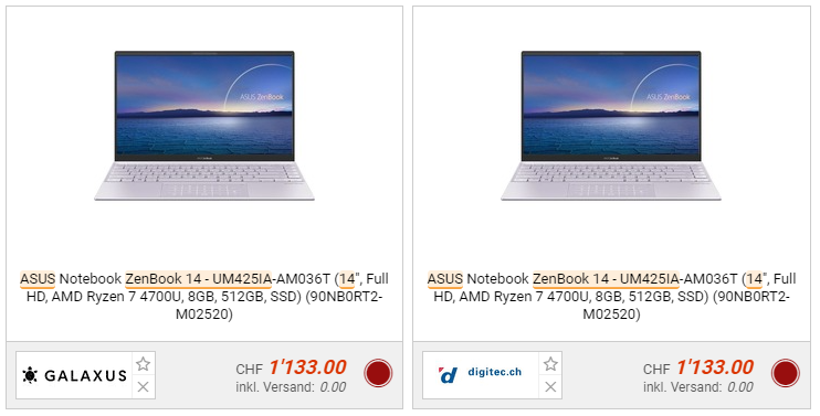 Bei Amazon gibts derzeit das Ultrabook ZenBook 14 von Asus mit Ryzen 7 4700U Prozessor zum Aktionspreis von knapp 1007 Franken. Laut toppreise läge der Vergleichspreis in der Schweiz bei 1133 Franken, allerdings ohne Liefertermin.