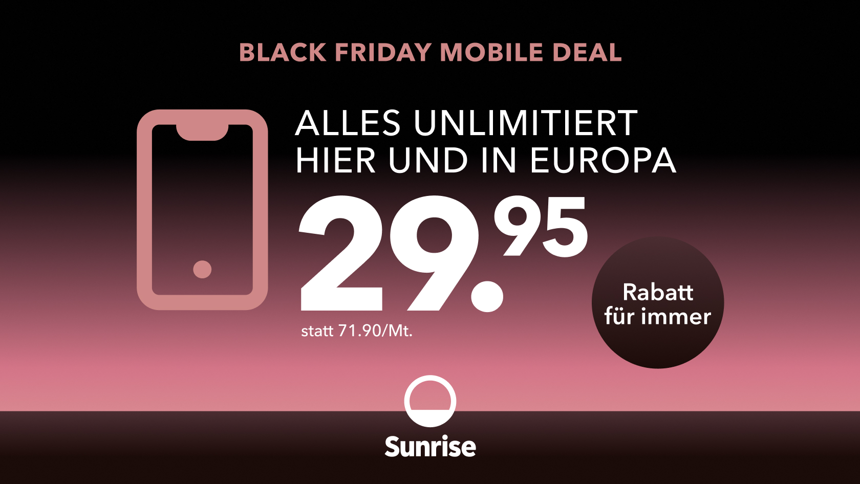 58% Rabatt für immer auf Up Mobile L: unlimitierte Daten & Anrufe hier und in Europa. Jetzt zu Sunrise wechseln und profitieren!