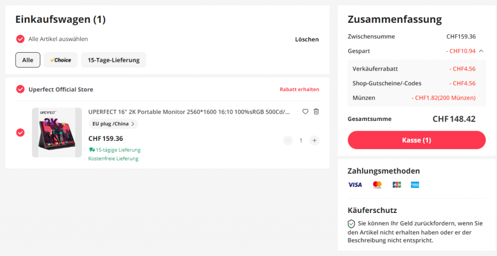 Ich persönlich würde keinen Monitor bei Ali bestellen…dann lieber in der Schweiz oder wegen mir auch Amazon…schon bezüglich etwaiger technischer Probleme oder Garantie.