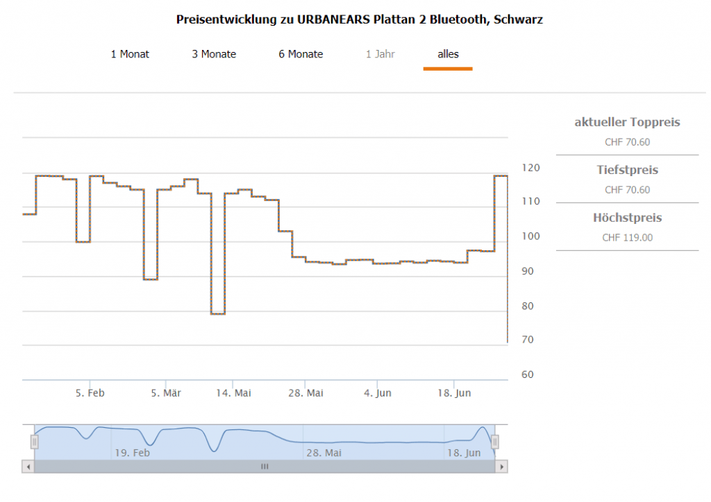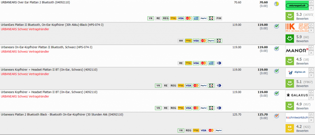 Bei microspot gibt’s den URB PLATTAN II BT BLK Kopfhöhrer momentan für CHF 70.90. Der beste je in der Schweiz gemessene Preis lag bei CHF 79.- momentan gibt’s den Kopfhöhrer sonst nirgends unter CHF 119.-