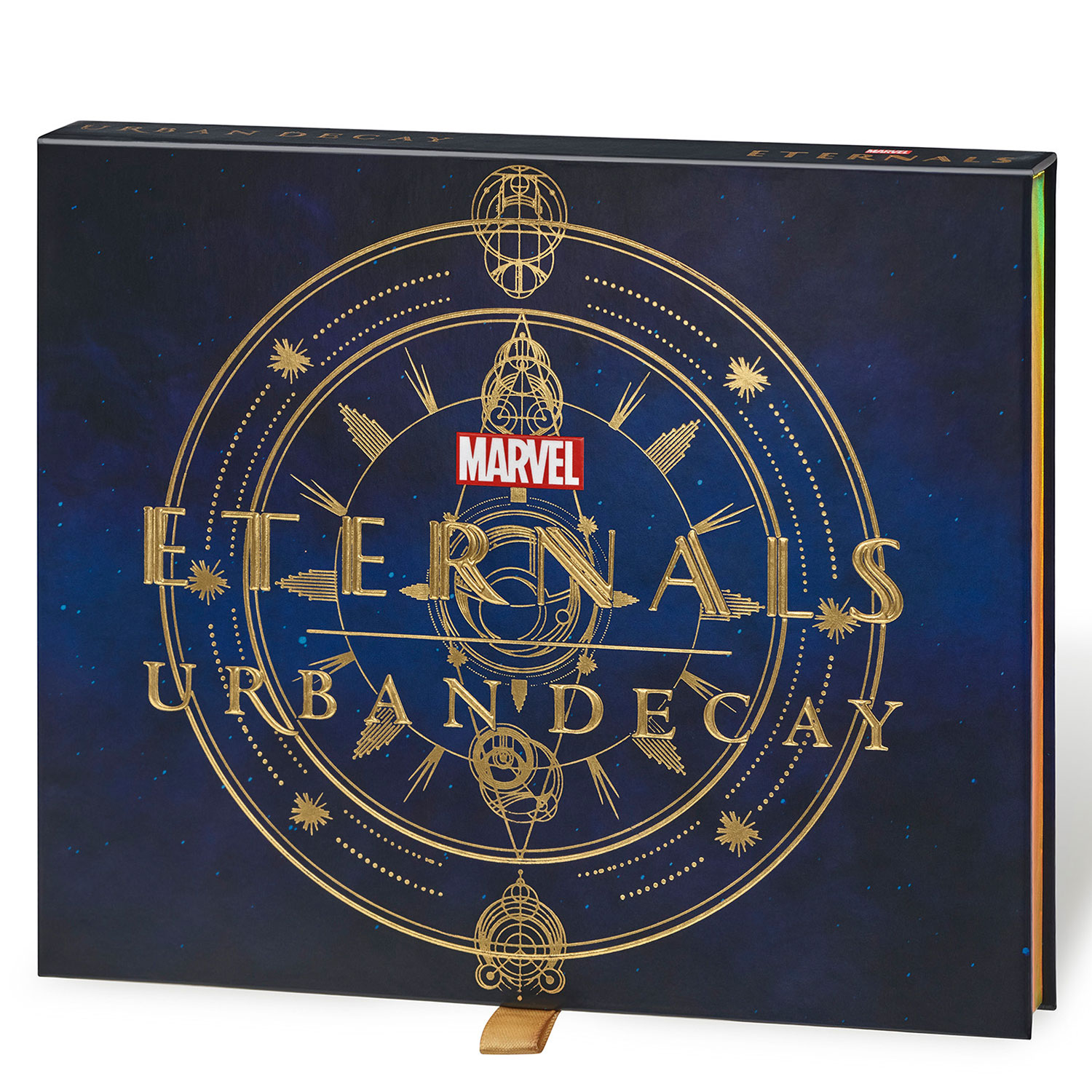 Diese Lidschattenpalette verfügt über ein grafisches 3D-Pop-up-Element und 15 brandneue Farbtöne, die von der Stärke und Anmut der unsterblichen Kriegerinnen, den Eternals, inspiriert sind.