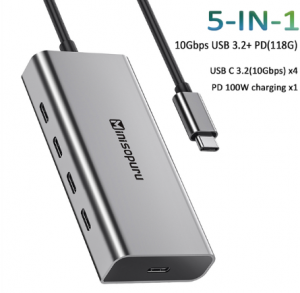 Bei Ali Express gibt es die USB-C Hub mit 100 Watt Power-Delivery, vier Ports, welche jeweils 10 Gbit/s haben.