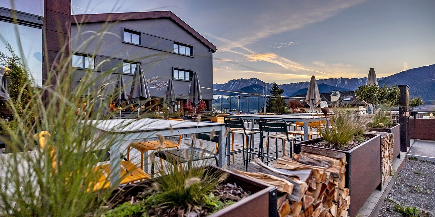 - Val Lumnezia bedeutet übersetzt Tal des Lichts. Hier befindet sich das Boutique-Hotel Pellas auf 1200 Metern Höhe direkt neben der Talstation von Vella mit Blick auf Berge und Blumenwiesen.