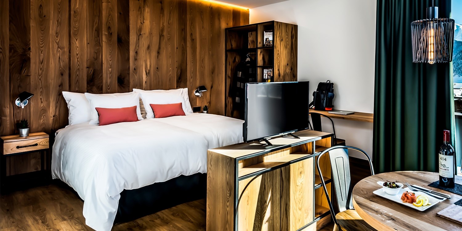 - 22 Zimmer gibt es im Hotel: Ihr schlaft in einer 30 Quadratmeter grossen Familiensuite mit Bergblick