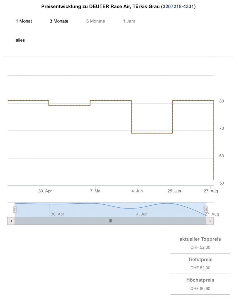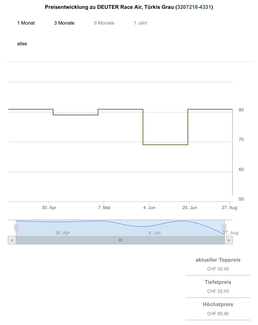für 52.- CHF, zweitbester Preis aktuell 80.90 CHF, best price bislang 69.- CHF