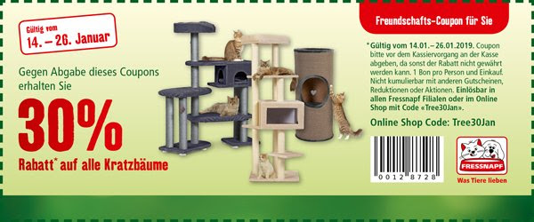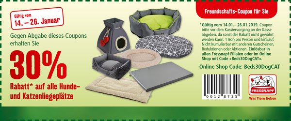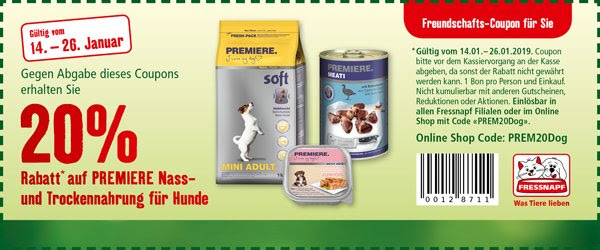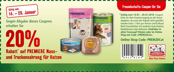 Bei Fressnapf gibt’s einige interessante Coupons. Gültig on- und offline bis am 26. Januar.
