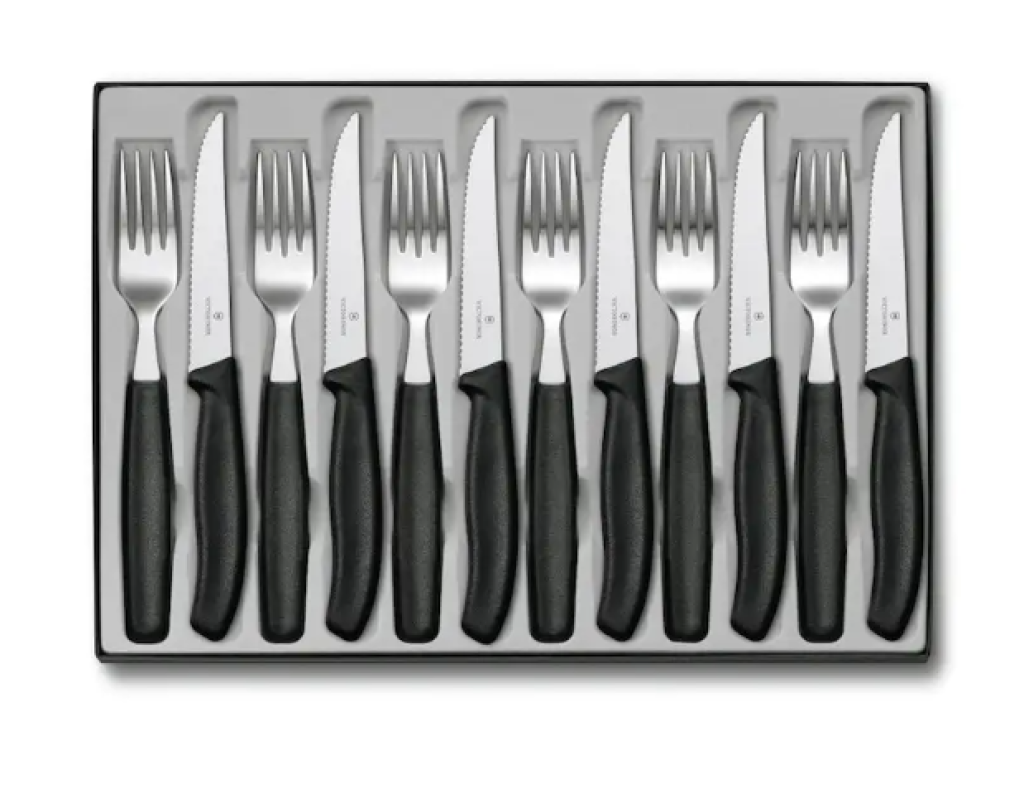 Victorinox bietet mit diesem 12-teiligen Besteck-Set eine hochwertige und elegante Lösung für den gedeckten Tisch. Das Set überzeugt durch sein modernes Design in Schwarz und die langlebige Verarbeitung, die den täglichen Gebrauch mühelos meistert. Es ist ideal für Familien oder kleine Dinnerpartys und bringt Stil und Funktionalität in deine Küche. Die einzelnen Besteckteile liegen angenehm in der Hand und sind spülmaschinenfest, was die Reinigung erleichtert. So wird jede Mahlzeit zu einem besonderen Erlebnis