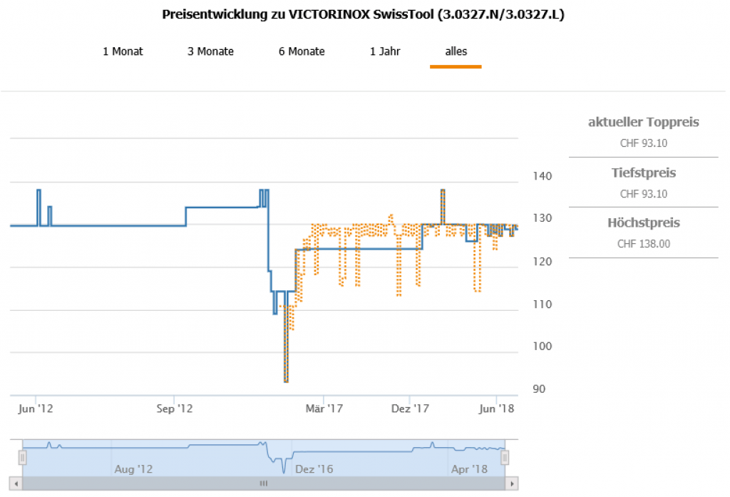 Bereits vor 2 Jahren gab es das Tool einmal für 93.10 CHF, ansonsten nie für unter 110.- CHF, der zweitbeste Preis liegt aktuell bei 129.55 CHF.