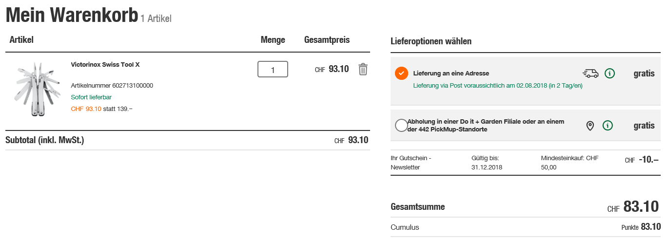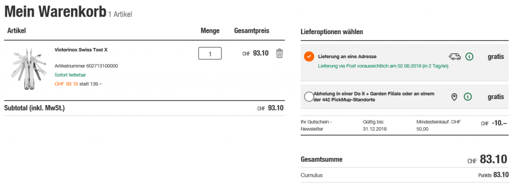 Man merkt der 1. August kommt, bei migros do it+garden gibt es das VICTORINOX SwissTool für 93.10 CHF. Mit einer schnellen Anmeldung beim Newsletter bekommt ihr einen 10.- CHF Gutschein und kommt so auf einen Preis von 83.10 CHF.
