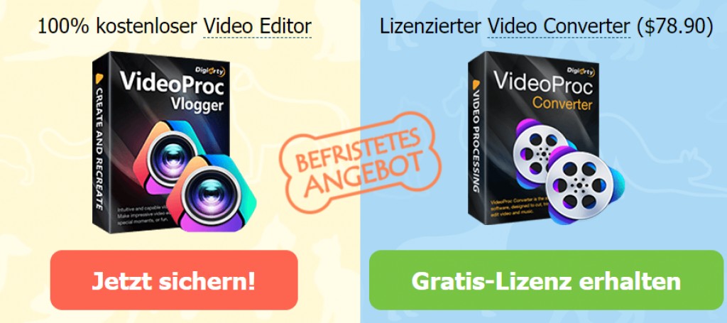 VideoProc Converter: Jeder kann eine Lizenz dieser Software kostenlos erhalten. Sonst ist nur die Lifetime Version im Wert von CHF 81.- erhältlich. Die Lizenz aktiviert alle Funktionen der aktuellen Version (keine Updates auf neue Versionen). Wenn man Updates möchte, kann man die Lifetime Version für CHF 39.- anstatt CHF 81.- kaufen: