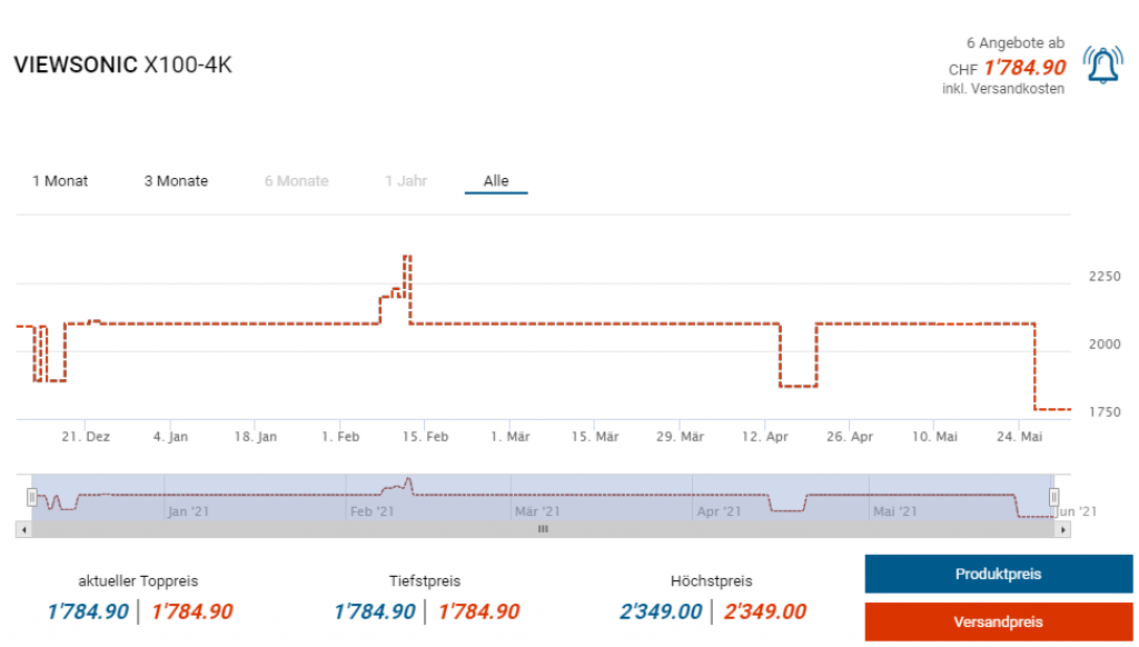 Bei Interdiscount gibts derzeit den UHD-Beamer Viewsonic X100-4K zum neuen Bestpreis von CHF 1784.90. Laut toppreise liegt der Vergleichspreis bei fast 2100 Franken. Mit dem bekannten 15 Franken Bon fahrt ihr nochmal etwas günstiger.