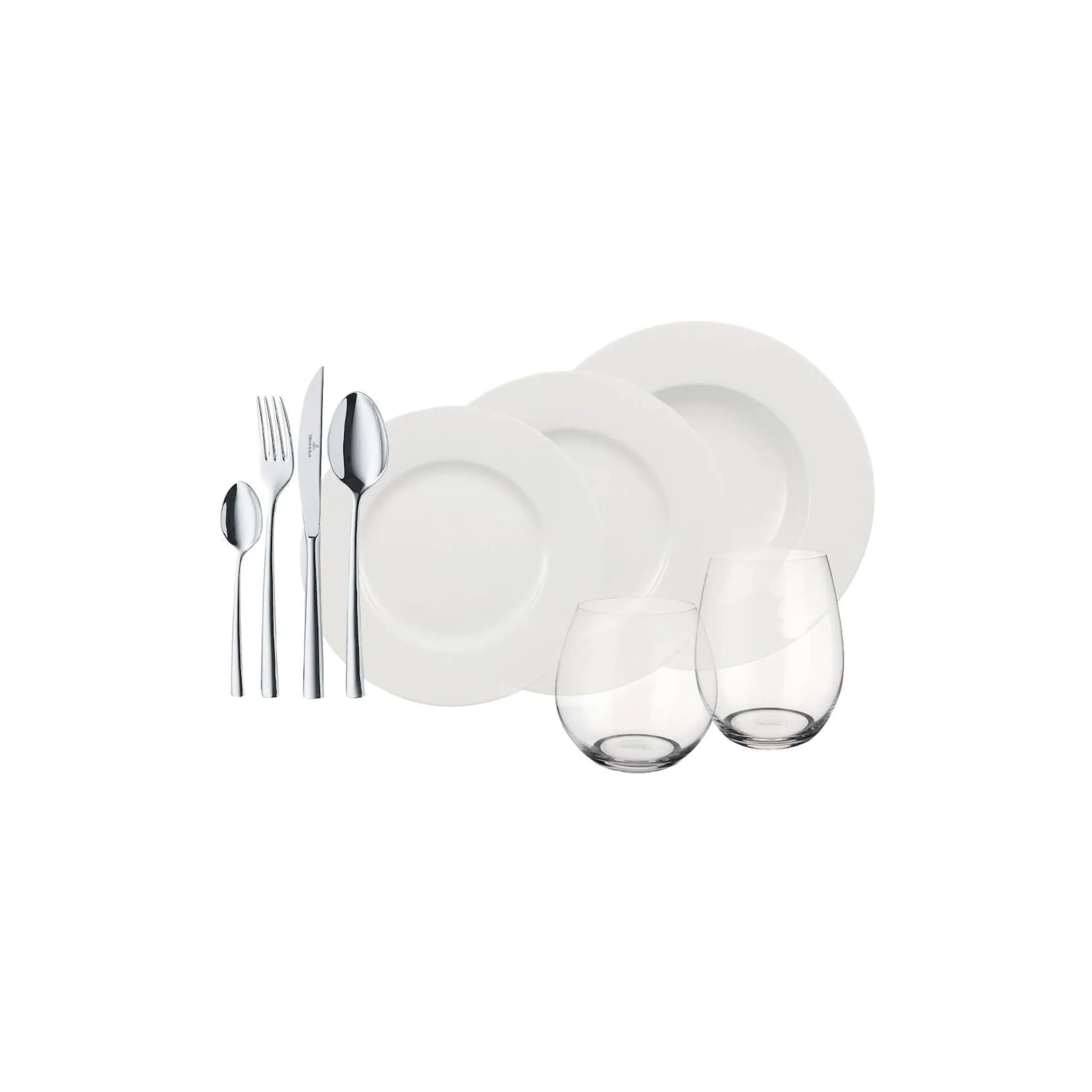 - Set beinhaltet je vier Dessertteller, Speiseteller, Suppenteller, Kaffeelöffel, Gabel, Löffel, Messer und 8 Gläser