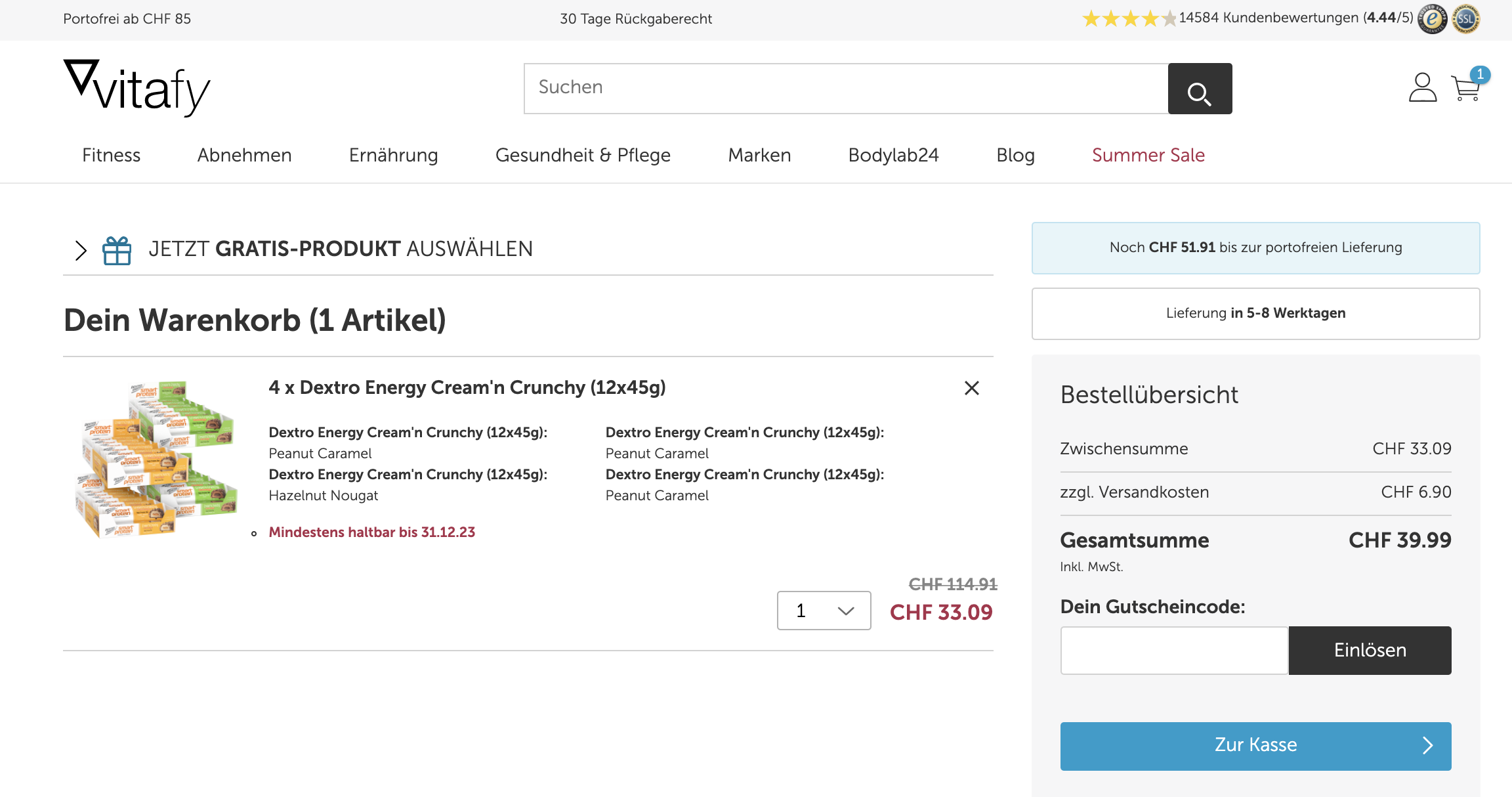 Sollte man noch andere Produkte finden, wäre ab 85 CHF Versandkostenfrei. Auf andere Produkte funktioniert auch der Gutscheincode: VFSALE