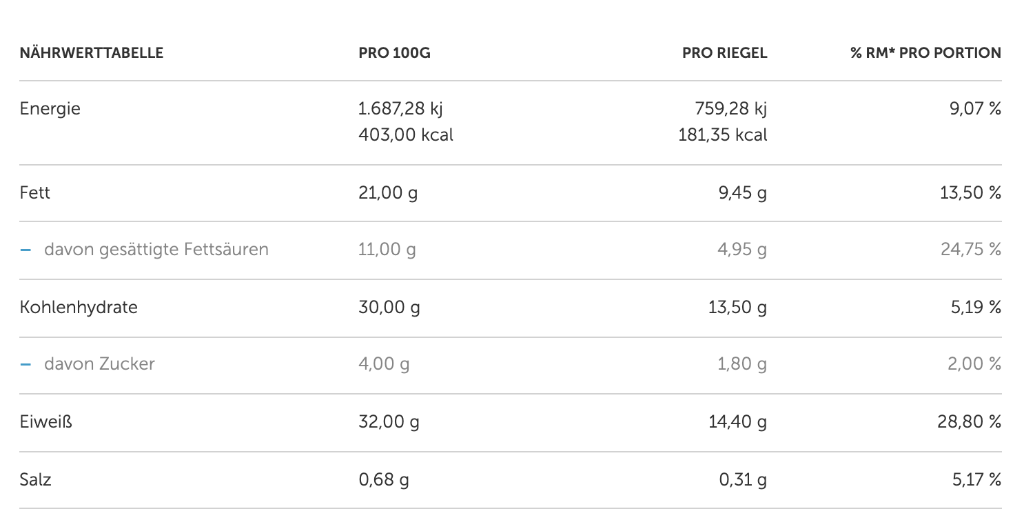 Hier die Nährwerttabelle: