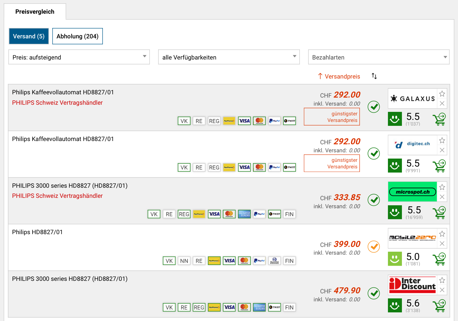 Hier gibt es dieses Modell (HD8827/01) aktuell für 222.- EUR.