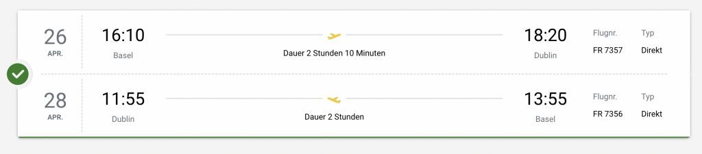 Bei Ryanair fliegt man von Basel nach Dublin und zurück für 36 Franken. Dies zum Beispiel für einen Kurztrip Ende April: