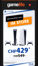 Bei den Gamelife Stores (früher Gamestop) gibt es aktuell die PS5 mit BD-Laufwerk für 429 Fr.