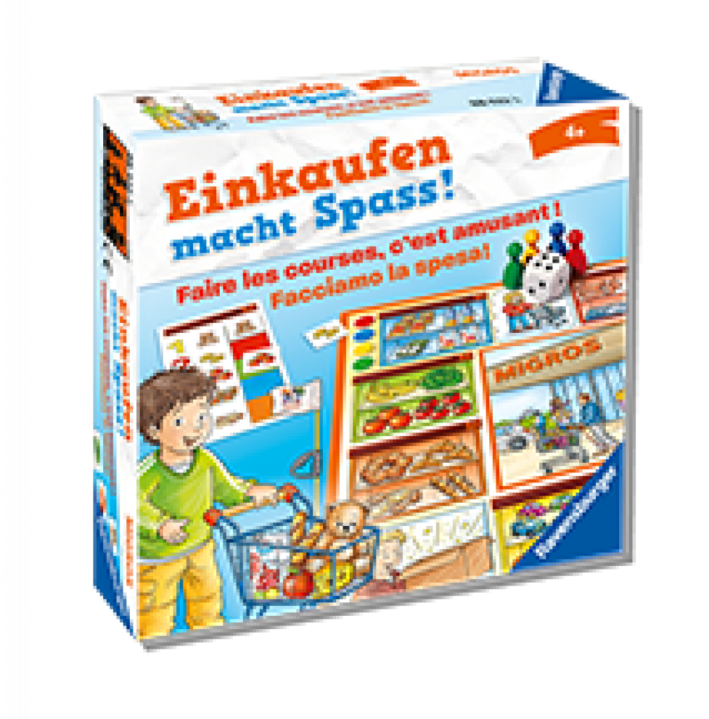 Am Samstag, 26.9.2020 erhalten Sie einmalig für Ihren Einkauf ab CHF 50.- ein original Ravensburger Würfel- und Legespiel «Einkaufen macht Spass», exklusiv in Ihrer Migros. Ein unterhaltsames Spiel, bei dem Kinder spielerisch ein Verständnis für Zahlen und Mengen entwickeln.