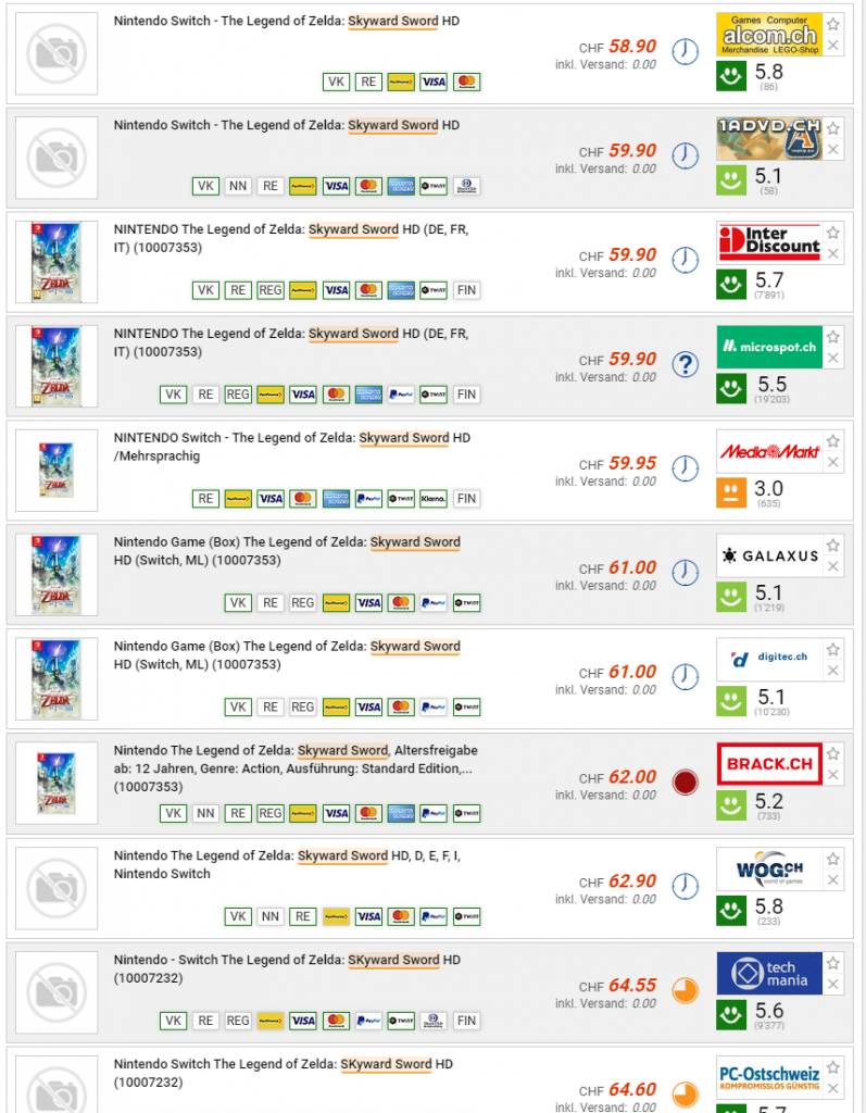 Bei Amazon Frankreich gibts schon jetzt das kommende Remake des Rollenspiels Legend of Zelda: Skyward Sword HD zum Aktionspreis von knapp 45 Franken. In der Schweiz starten die Vorbestellerpreise derweil erst bei knapp 59 Franken.