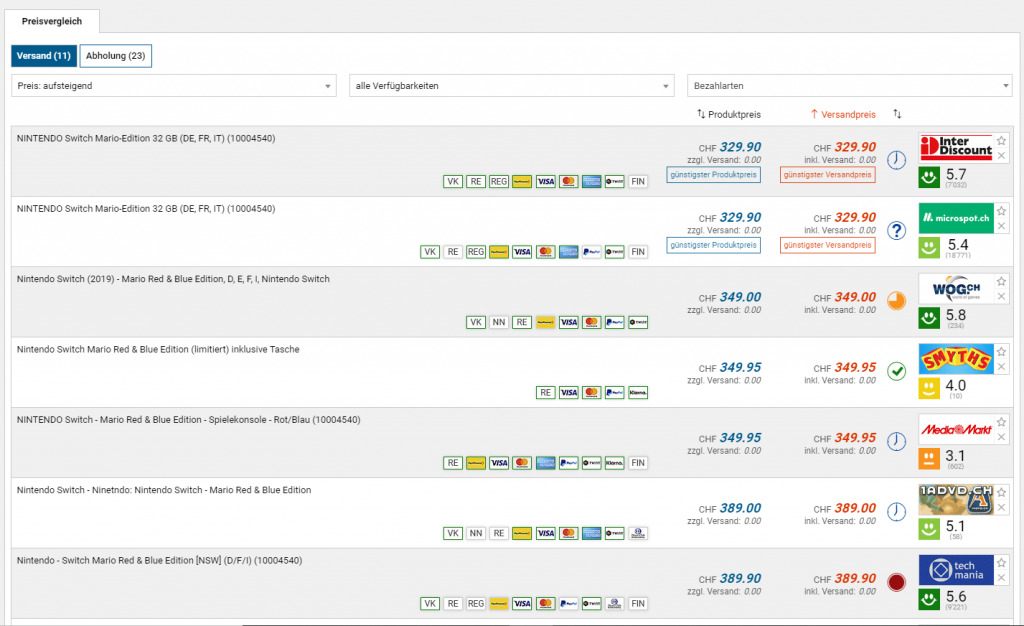 Die Switch ist brutal preisstabil, ausser man hat mal noch einen melectronics-Bon dann lohnt es sich um so mehr :)