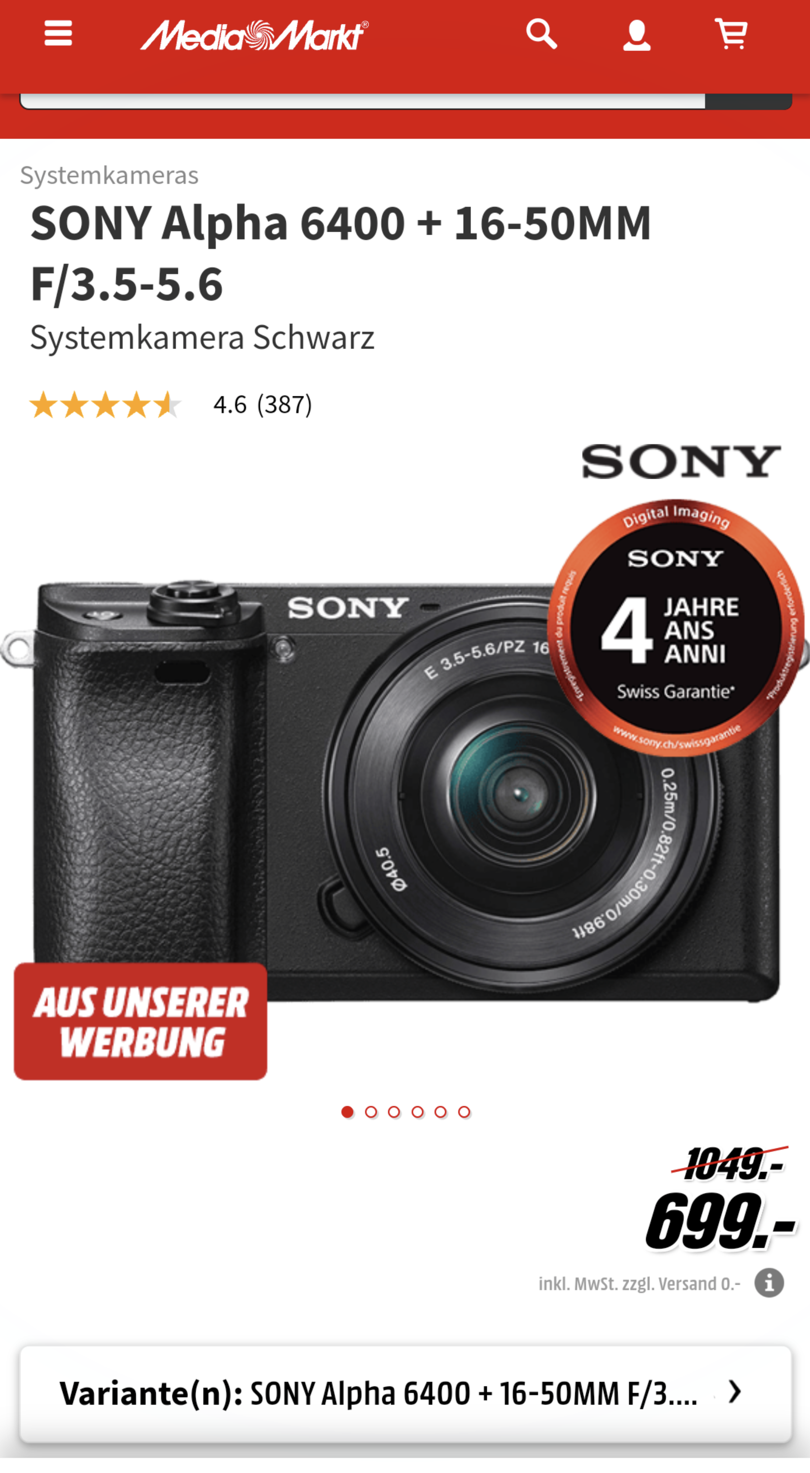 Nun leider ausverkauft.. aber auf Galaxus ist der Deal für den gleichen Preis CHF 419.- zu haben.
